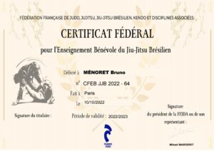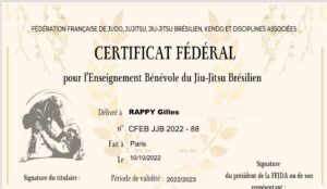 La qualité de l’enseignement ne cesse de s’améliorer à l’Académie Pythagore Angoulême avec 3 nouveaux diplômés du CFEB. Les nouveaux promus sont Gilles Rappy, Bruno Menoret et Dimitri Robert. Ce qui porte à 5 le nombre des encadrants diplômés auprès de la Fédération de Judo à laquelle appartient désormais la CFJJB « Confédération Française de Jiu Jitsu Brésilien ».