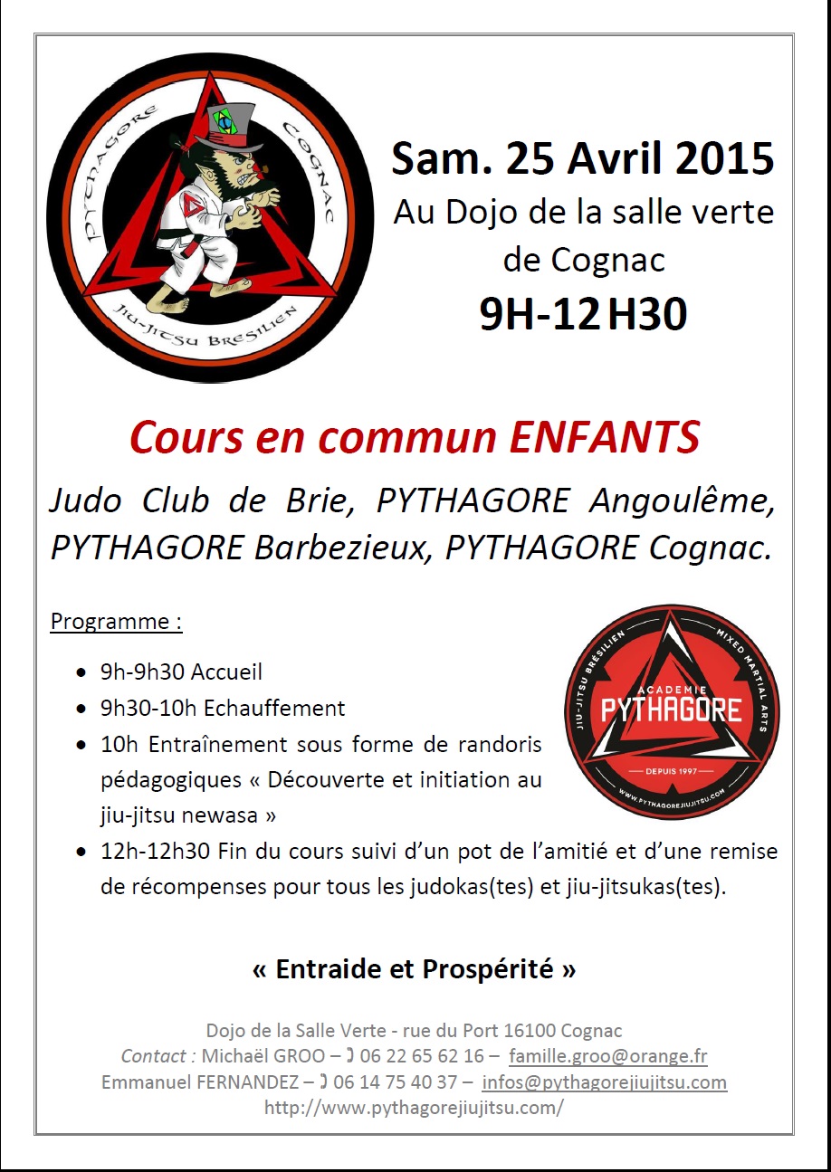 Retrouvez toutes les infos du club sur https://www.pythagorejiujitsu.com et sur Facebook « Académie Pythagore »