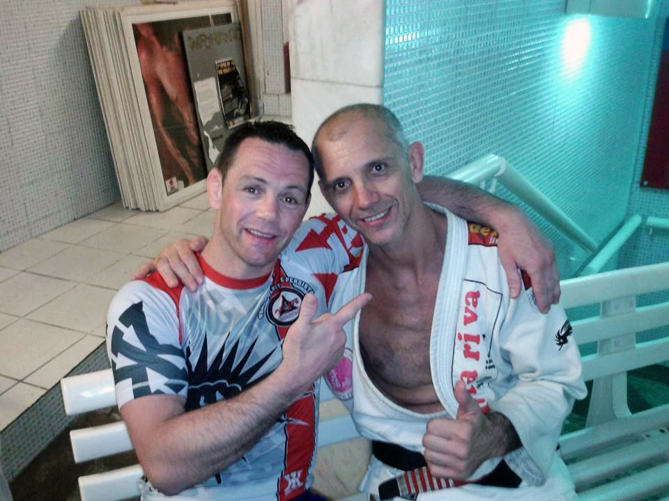 Maître Ricardo De La Riva a profité de la visite d’Emmanuel Fernandez à Rio de Janeiro au Brésil pour lui remettre la ceinture noire 3ème degré de Jiu Jitsu Brésilien.