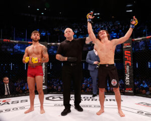 Au second round, le scénario s’est inversé. Plus déterminé que jamais, Giovanni a pris l’ascendant. Coinçant Quinn contre la cage, il l’a amené au sol, lui a pris le dos et, l’a soumis par étranglement. Sous les acclamations d’un public anglais conquis par cette remontée spectaculaire, Giovanni Fernandez a marqué les esprits par sa ténacité et sa détermination.
