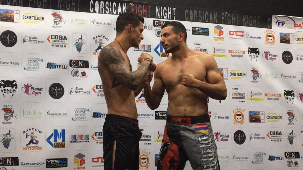 Le combat était annoncé comme très dur, son adversaire décrit comme imbattable, une machine, l’Arménien Martin Artesyan (M.M.A Fight Club) a finalement subi une domination écrasante du redoutable Nicolas Joannes (Pythagore). Samedi 17 juin à Ajaccio en Corse le Charentais originaire de Cognac c’est imposé haut la main dès le premier round et en moins de 2 minutes. Il a littéralement arrosé son adversaire de coups, Martin a été envoyé au tapis à 3 reprises sous la foudre des poings de Nicolas, puis finalisé par un étranglement en guillotine. Le game-plan minutieusement élaboré avec Frédéric Fernandez, son coach, a eu raison du dantesque sociétaire du M.M.A Fight Club. Niko a conquis le cœur du public corse, électrisé une foule en délire qui en redemande, les coups retentissants jusqu’au fond des gradins. Tout le clan Pythagore se réjouit de cette victoire, Nicolas prouve une fois de plus qu’il a le potentiel d’une carrière prometteuse.