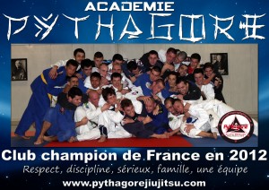 L’Académie Pythagore Jiu Jitsu Brésilien est élue Club Champion de France en 2012 grâce à ces résultats en compétition.