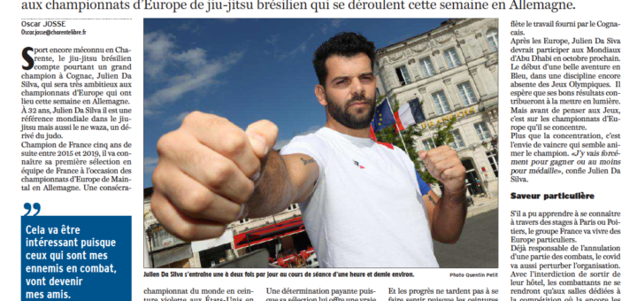 Journal Sud-Ouest du jeudi 19 août 2021 Julien Da Silva : « La première place ou rien » Référence de jiu-jitsu brésilien, l’ambitieux Charentais de 32 ans a gravi peu à peu les échelons de...